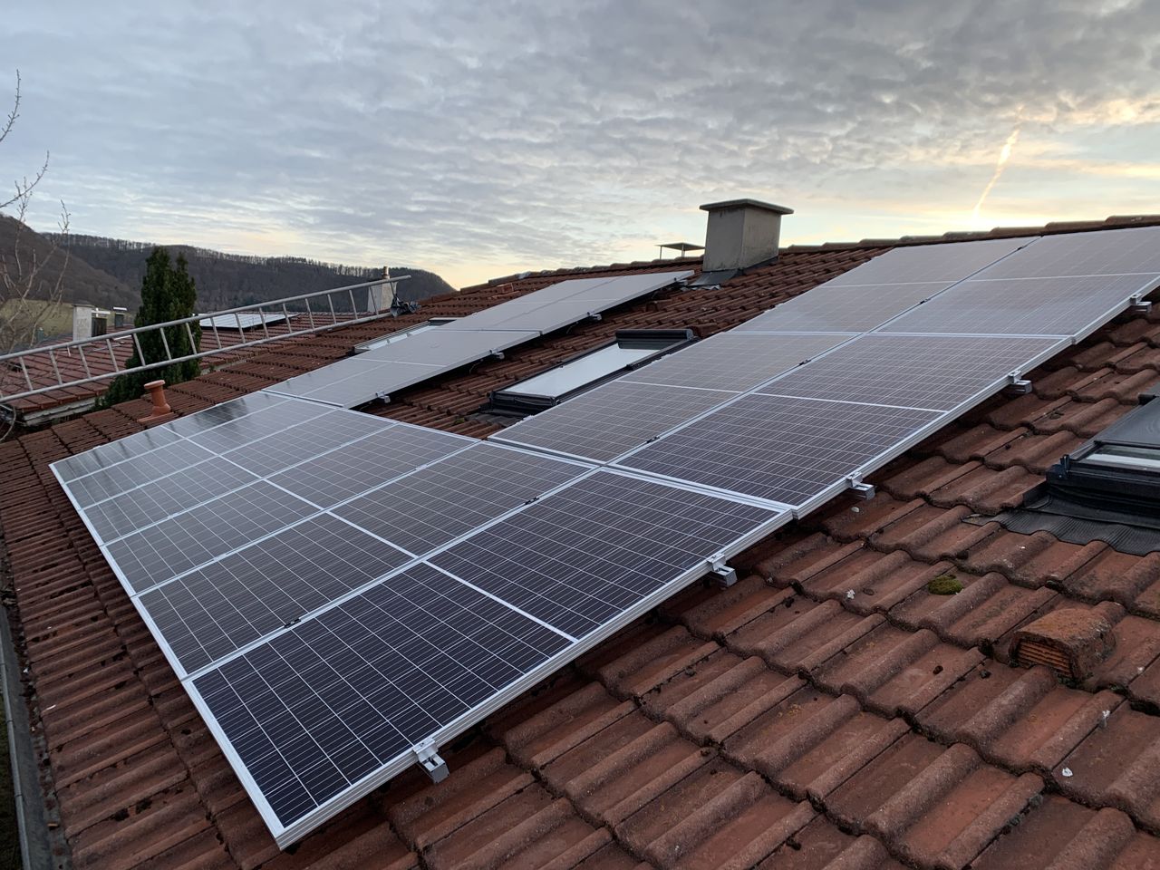 Um sich vor steigenden Strompreisen und Netzausfällen zu schützen wurde eine fast 15 kWp starke Aufdachanlage geplant und installiert.