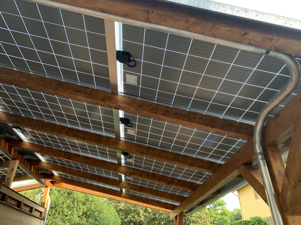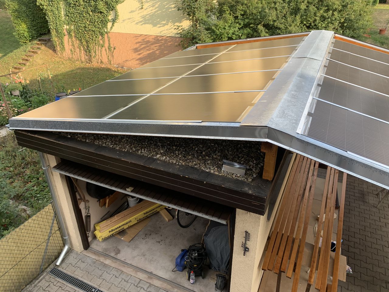 Ziel war eine Garagen- sowie angrenzender Carportüberdachung zu realisieren, wobei unser Augenmerk auf die Lichtdurchlässigkeit der PV-Module verbunden mit einer auf den Kunden zugeschnittenen Abschattung gerichtet war.