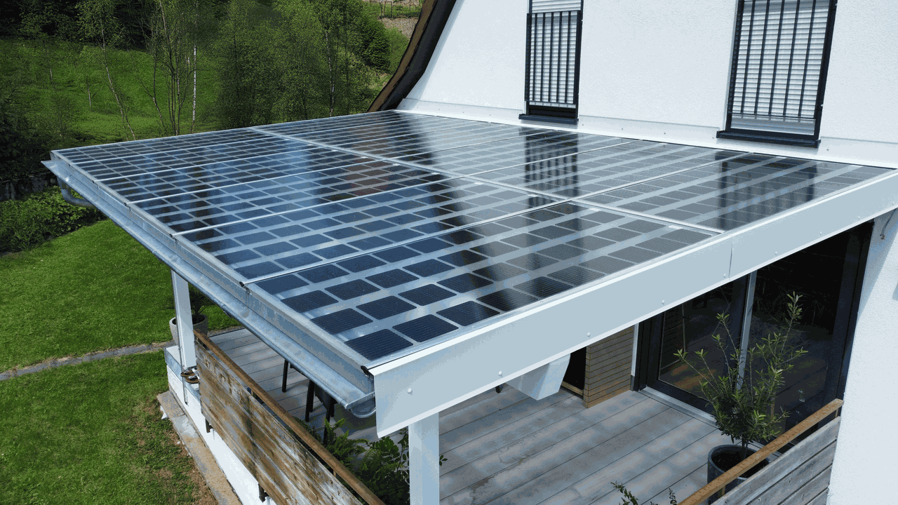 Indach-Photovoltaikanlage zur Terrassenverschattung