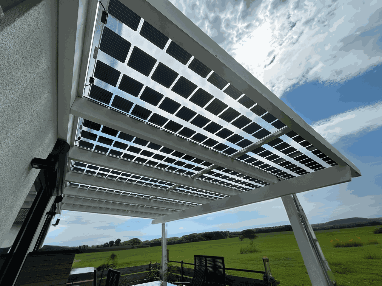 In Mössingen wurde eine beeindruckende Terrassenüberdachung realisiert, die nicht nur vor Regen schützt, sondern auch durch ihre besondere Konstruktion und die integrierten Solarmodule besticht. Diese Solaranlage wurde von uns vollständig geplant, installiert und wird regelmäßig gewartet.