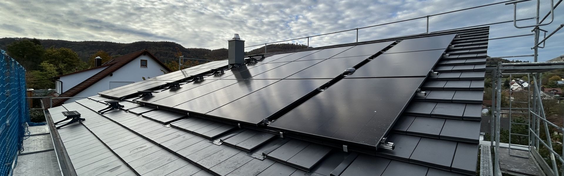Es wurden Fullblack Glas-Glas Module installiert. Außerdem schwarze Ersatzziegel. Die Montagematerialien (Klemmen etc.) wurden ebenfalls in Schwarz gehalten.