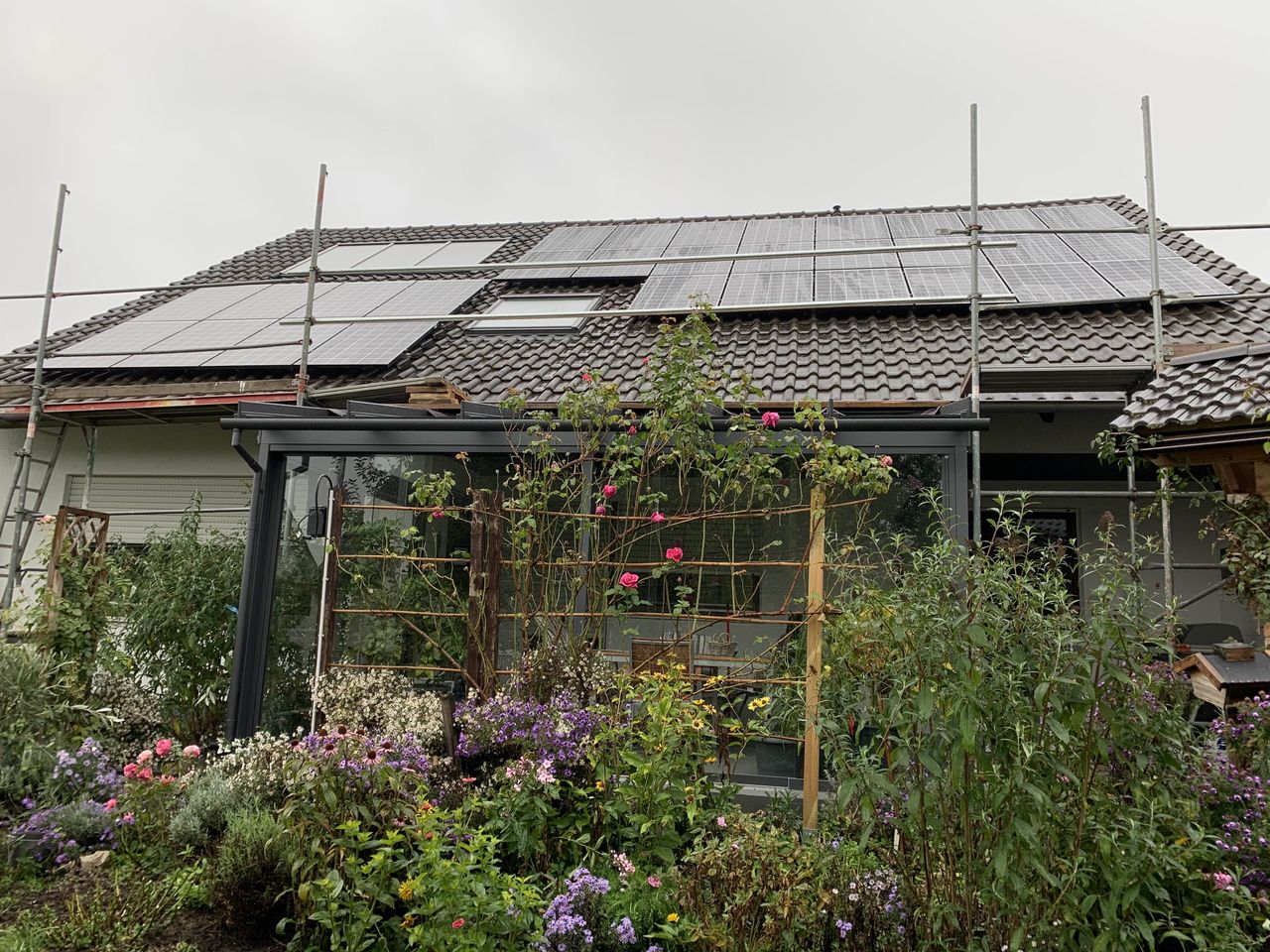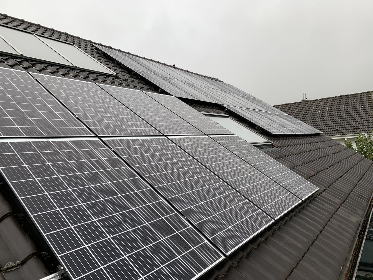 Realisierung einer Aufdachanlage mit 9,99 kWp und einem Speicher von 11,5 kWh mit Erweiterungsoption und Ladestation, da ein Elektroauto angeschafft wurde.