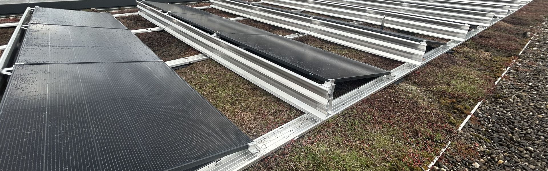 Hierzu wurde auf der bestehenden Begrünung eine geeignete Unterkonstruktion gestellt und mit Modulen bestückt.
